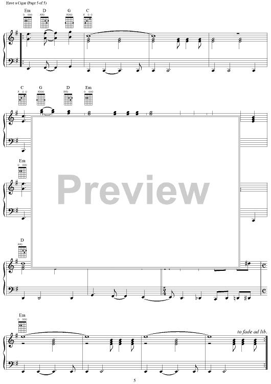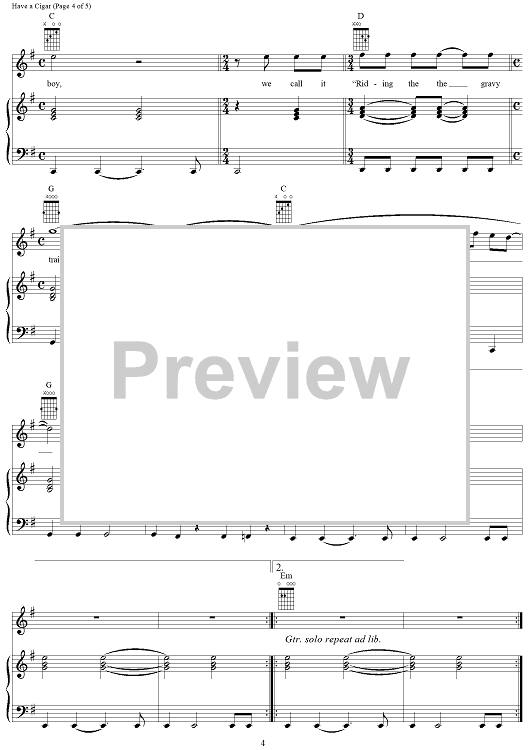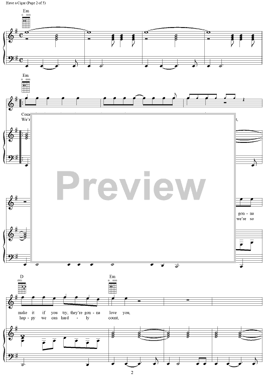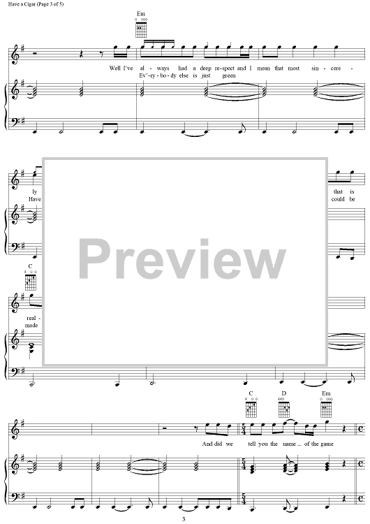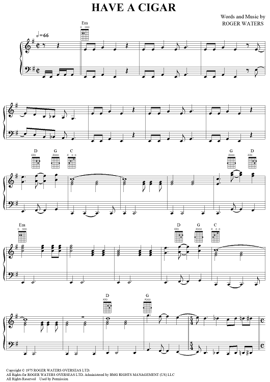Digital Sheet Music for Have a Cigar by Pink Floyd, Roger Waters scored for Piano/Vocal/Chords; id:284276
