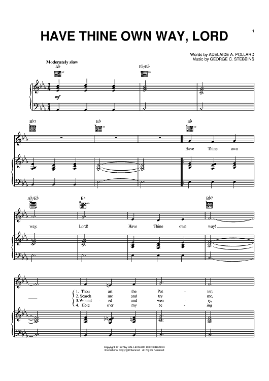 Digital Sheet Music for Have Thine Own Way, Lord by George C. Stebbins, Adelaide A. Pollard scored for Piano/Vocal/Chords; id:368398