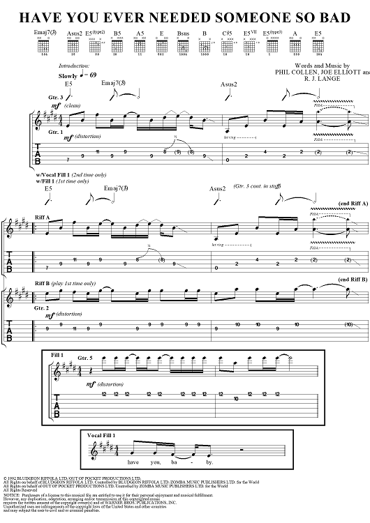 "Have You Ever Needed Someone So Bad" Sheet Music by Def Leppard