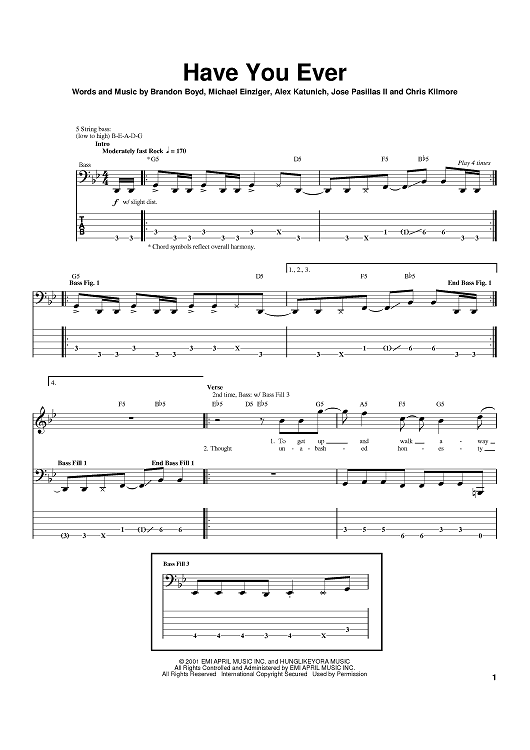 Digital Sheet Music for Have You Ever by Brandon Boyd, Mike Einziger, Incubus, Alex Katunich scored for Bass Tab; id:371996