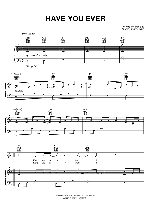 Digital Sheet Music for Have You Ever by Shawn McDonald scored for Piano/Vocal/Chords; id:381902