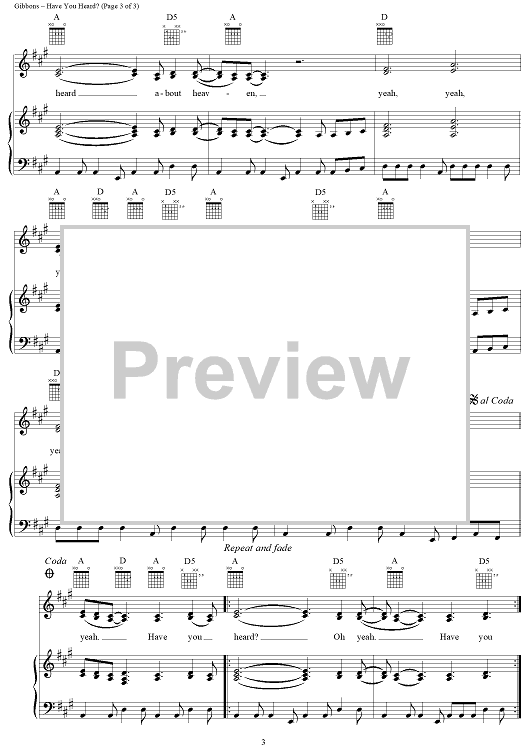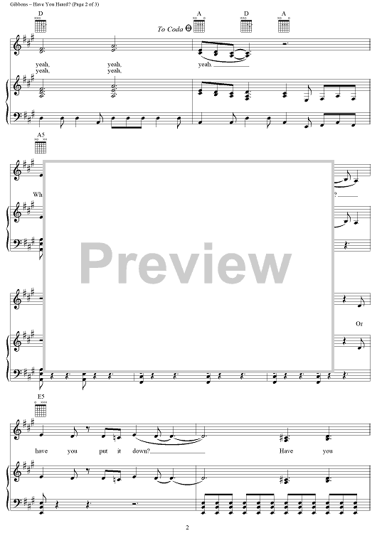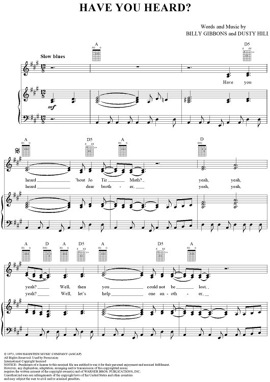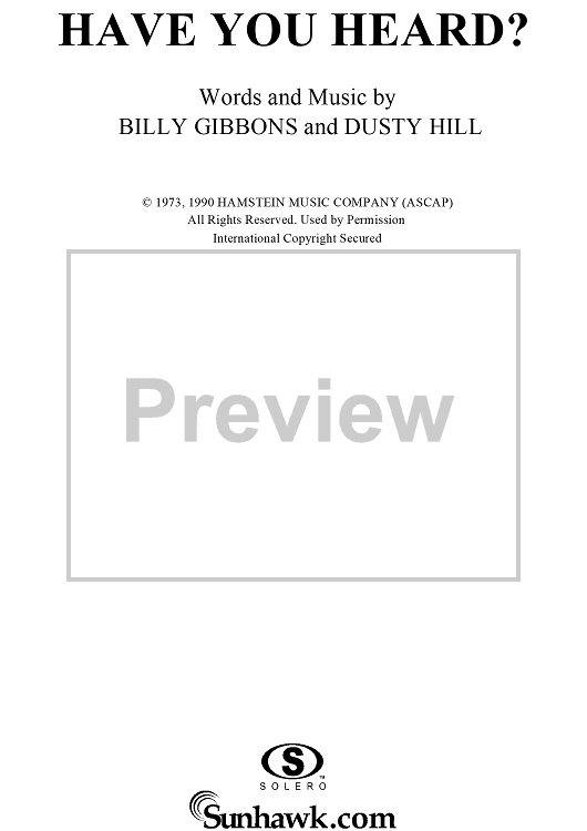 Digital Sheet Music for Have You Heard? by Billy Gibbons, Dusty Hill, ZZ Top scored for Piano/Vocal/Chords; id:268524