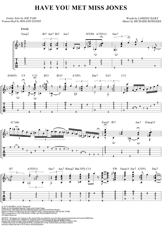 "Have You Met Miss Jones?" Sheet Music by Joe Pass