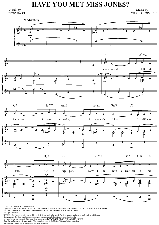 Digital Sheet Music for Have You Met Miss Jones? by Richard Rodgers, Lorenz Hart, Mel Torme scored for Piano/Vocal/Chords; id:124075