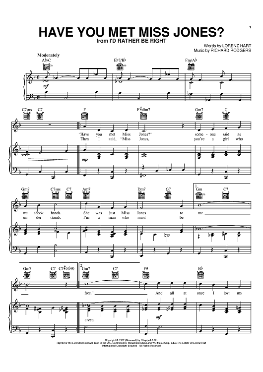 Digital Sheet Music for Have You Met Miss Jones? by Richard Rodgers, Lorenz Hart scored for Piano/Vocal/Chords; id:370834