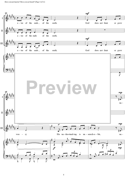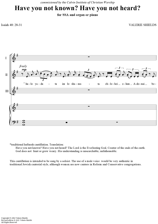 Digital Sheet Music for Have you not known? Have you not heard? by Valerie Shields scored for SSA Choir/Organ or Piano; id:470831