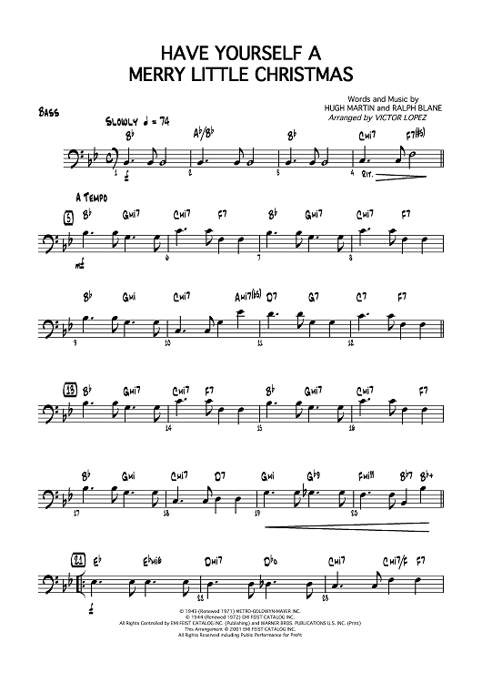 "Have Yourself a Merry Little Christmas - Bass" Sheet Music by Hugh Martin