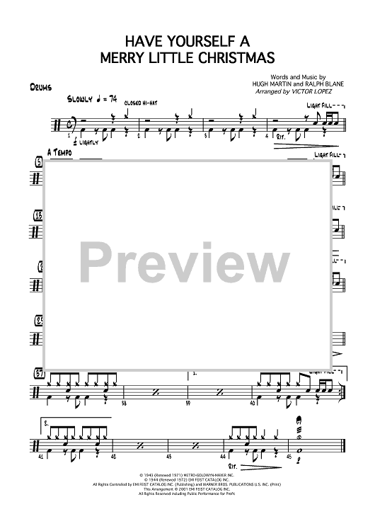 "Have Yourself a Merry Little Christmas - Drums" Sheet Music by Hugh Martin