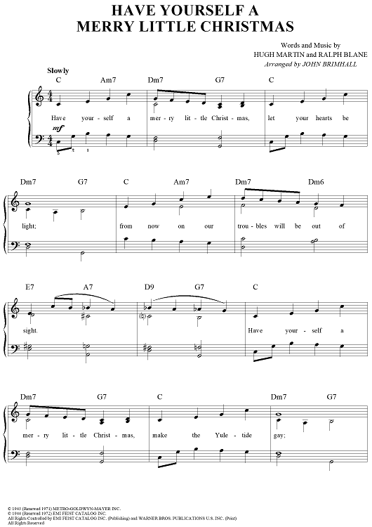 Digital Sheet Music for Have Yourself a Merry Little Christmas by Hugh Martin, Ralph Blane, John Brimhall scored for Easy Piano/Vocal; id:317678