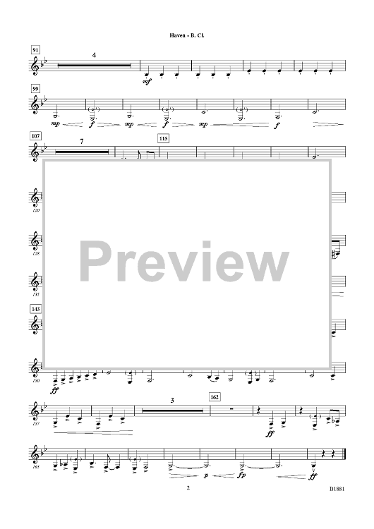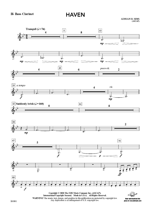 Digital Sheet Music for Haven - Bb Bass Clarinet by Adrian B. Sims scored for Concert Band; id:498868