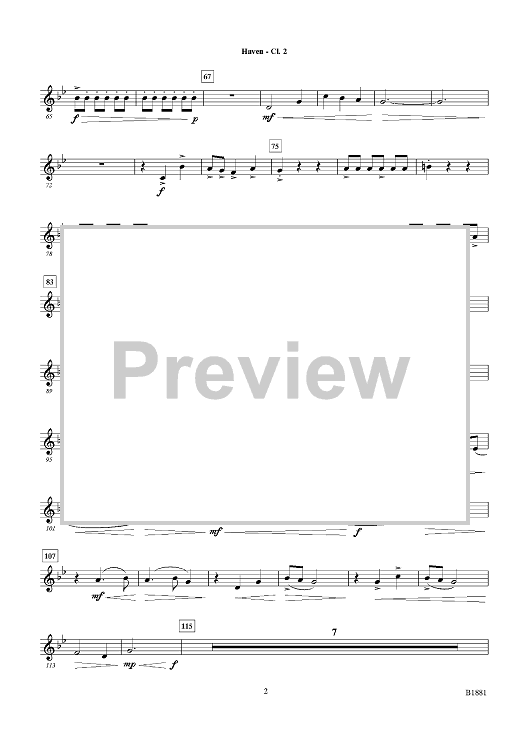 Digital Sheet Music for Haven - Bb Clarinet 2 by Adrian B. Sims scored for Concert Band; id:498866