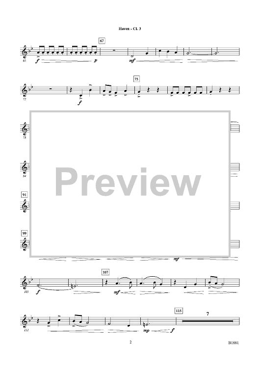 Digital Sheet Music for Haven - Bb Clarinet 3 by Adrian B. Sims scored for Concert Band; id:498867