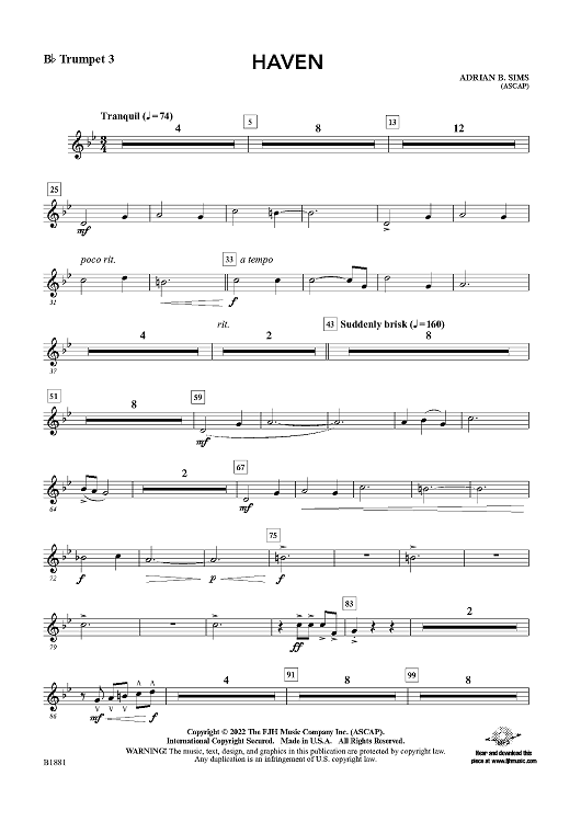 "Haven - Bb Trumpet 3" Sheet Music by Adrian B. Sims