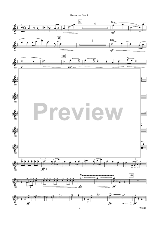 "Haven - Eb Alto Sax 1" Sheet Music by Adrian B. Sims