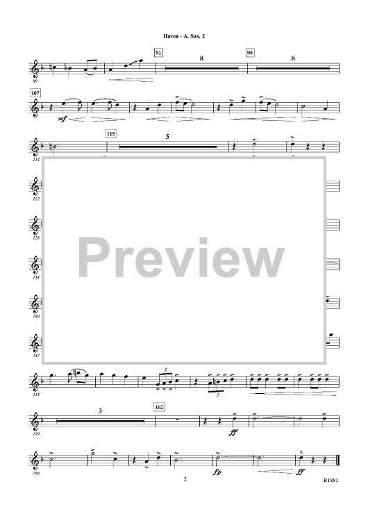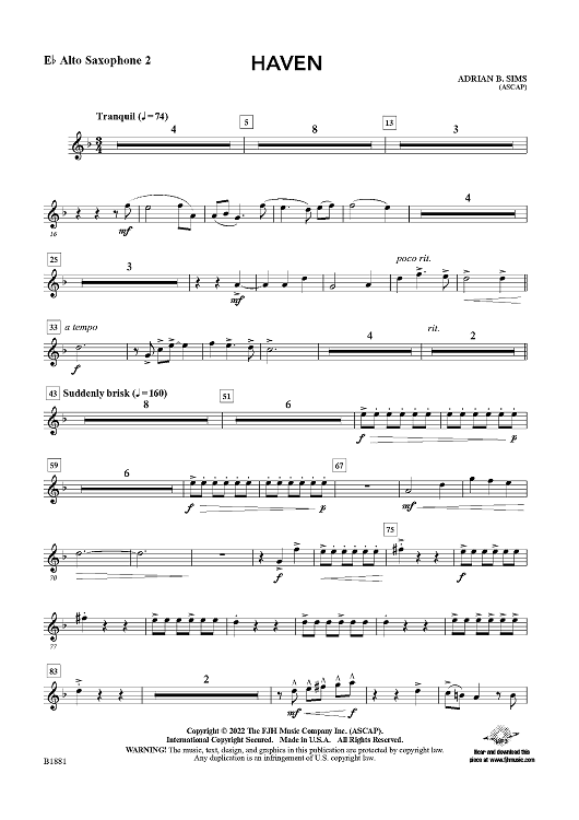 "Haven - Eb Alto Sax 2" Sheet Music by Adrian B. Sims
