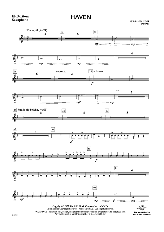 Digital Sheet Music for Haven - Eb Baritone Sax by Adrian B. Sims scored for Concert Band; id:498872