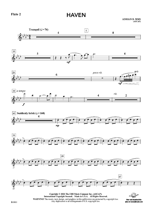 "Haven - Flute 2" Sheet Music by Adrian B. Sims