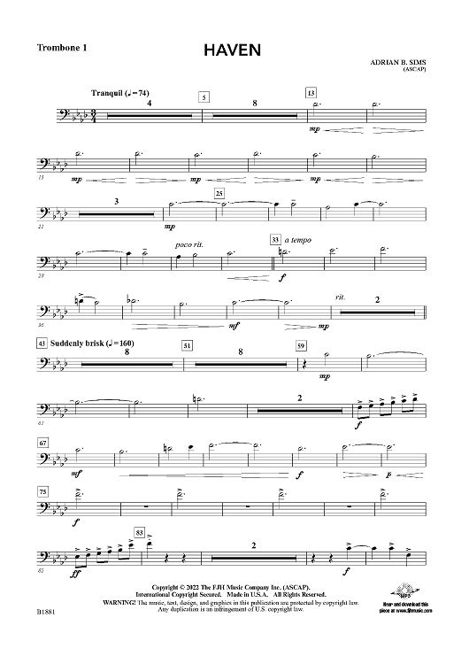 "Haven - Trombone 1" Sheet Music by Adrian B. Sims