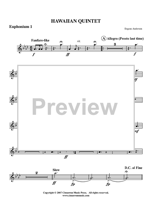Digital Sheet Music for Hawaiian Quintet - Euphonium 1 BC/TC by Eugene Anderson scored for Tuba Ensemble; id:416891
