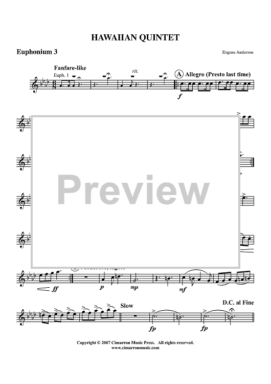 "Hawaiian Quintet - Euphonium 3 BC/TC" Sheet Music by Eugene Anderson