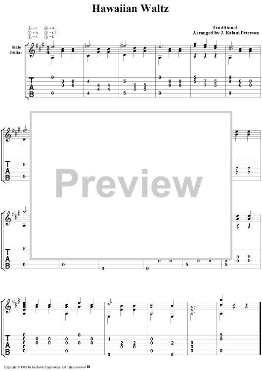 Digital Sheet Music for Hawaiian Waltz by J. Kalani Peterson, Traditional scored for Guitar Tab; id:95679