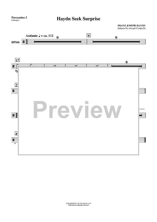 Digital Sheet Music for Haydn Seek Surprise - Percussion 2 by Joseph Compello scored for Beginning Concert Band; id:420000