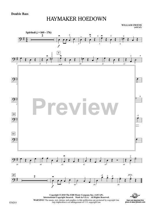 Digital Sheet Music for Haymaker Hoedown - Double Bass by William Owens scored for Orchestra; id:411596