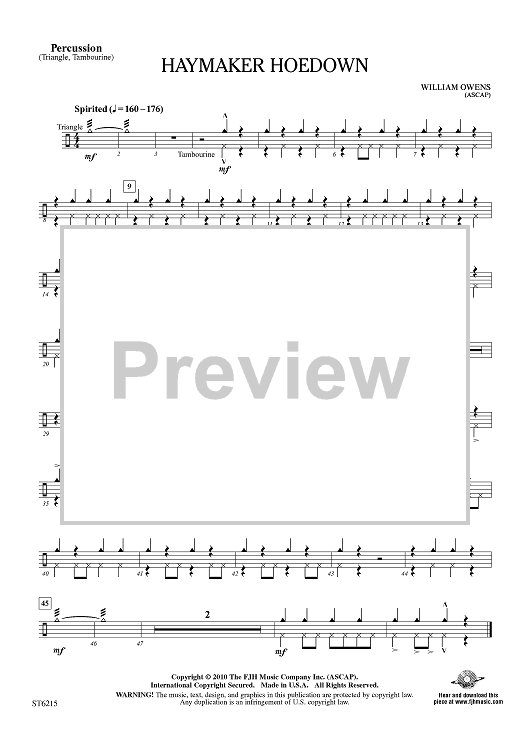 "Haymaker Hoedown - Percussion" Sheet Music by William Owens