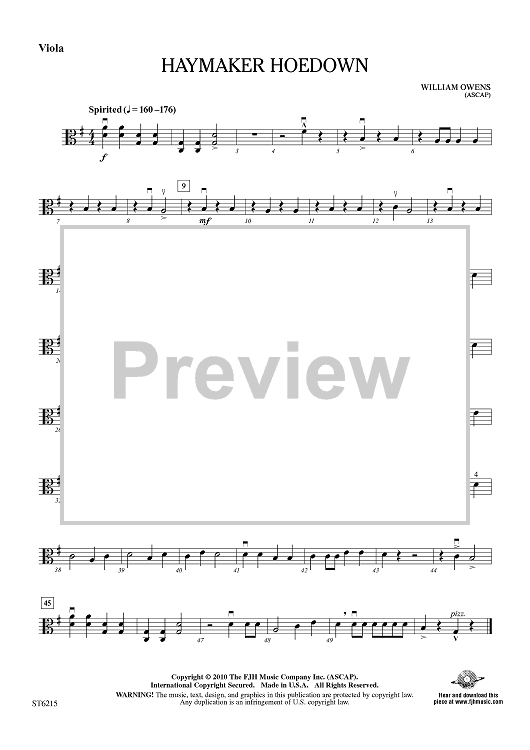 "Haymaker Hoedown - Viola" Sheet Music by William Owens