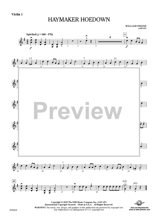 "Haymaker Hoedown - Violin 1" Sheet Music by William Owens