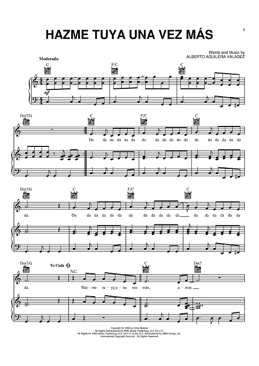 Digital Sheet Music for Hazme Tuya Una Vez Mas by Alberto Aguilera Valadez scored for Piano/Vocal/Chords; id:371743