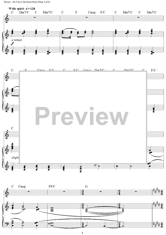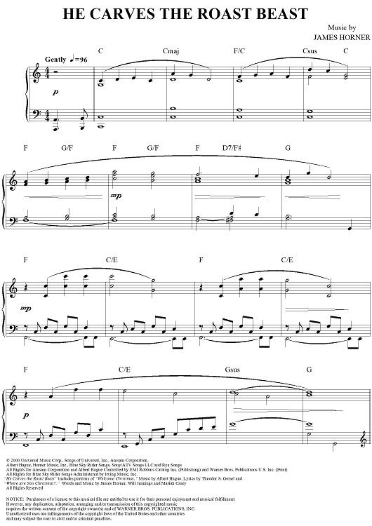 Digital Sheet Music for He Carves the Roast Beast by James Horner scored for Piano/Vocal/Chords; id:284076