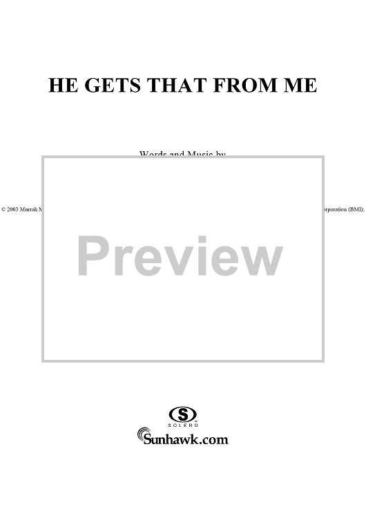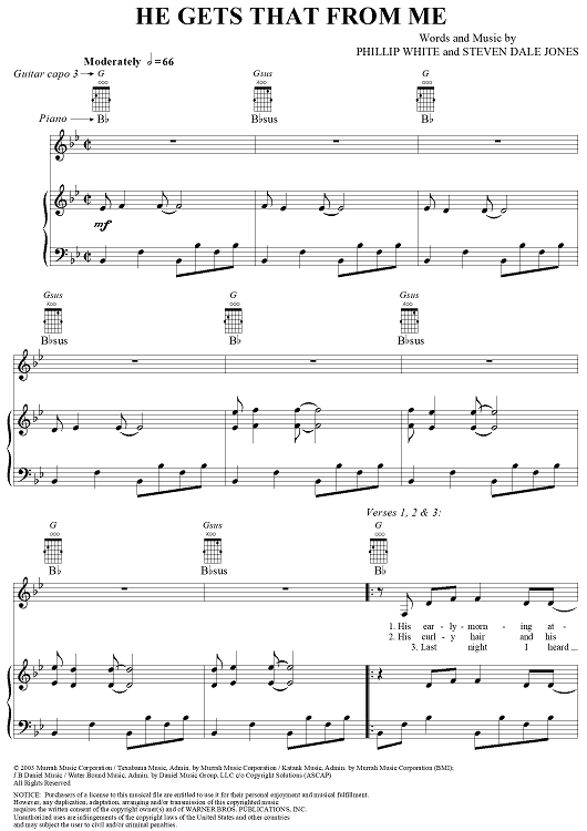 Digital Sheet Music for He Gets That From Me by Reba McEntire, Steven Dale Jones, Phillip White scored for Piano/Vocal/Chords; id:307897