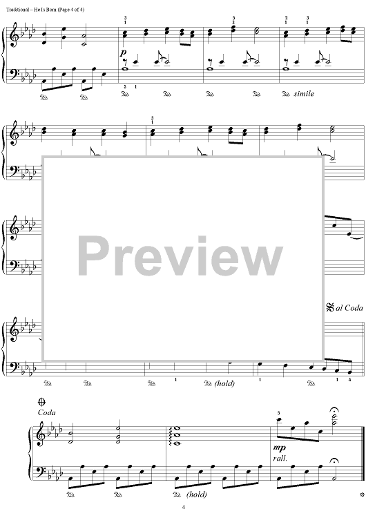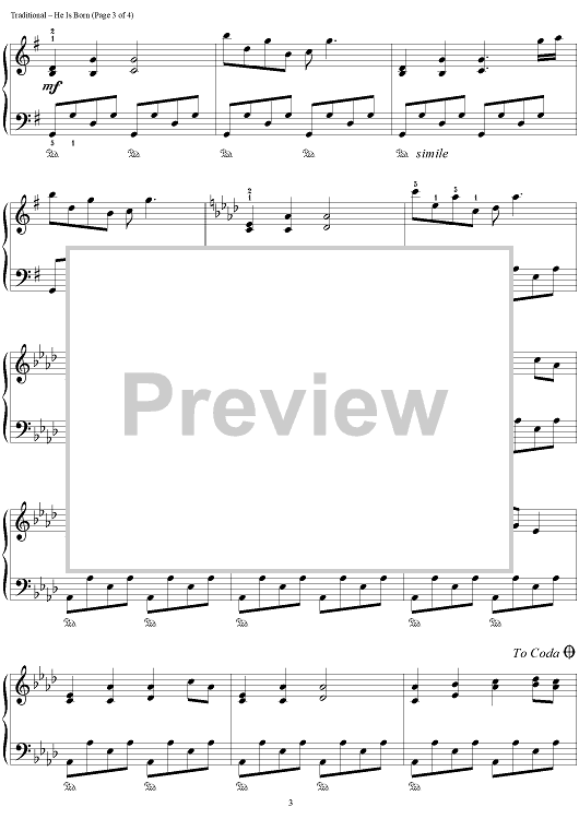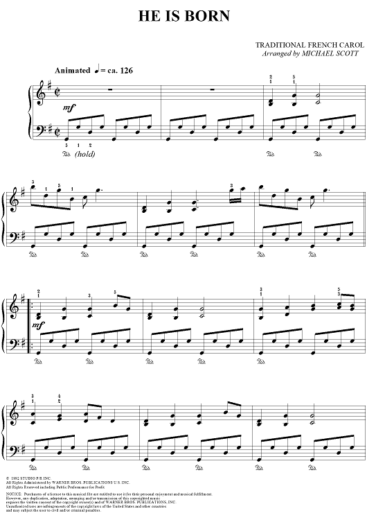 Digital Sheet Music for He Is Born by Michael Scott, Traditional scored for Piano Solo; id:220409