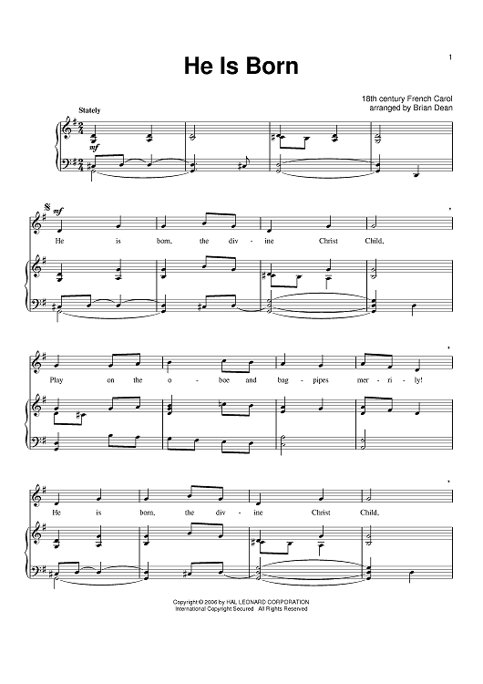 Digital Sheet Music for He Is Born by scored for Piano/Vocal/Chords; id:390438