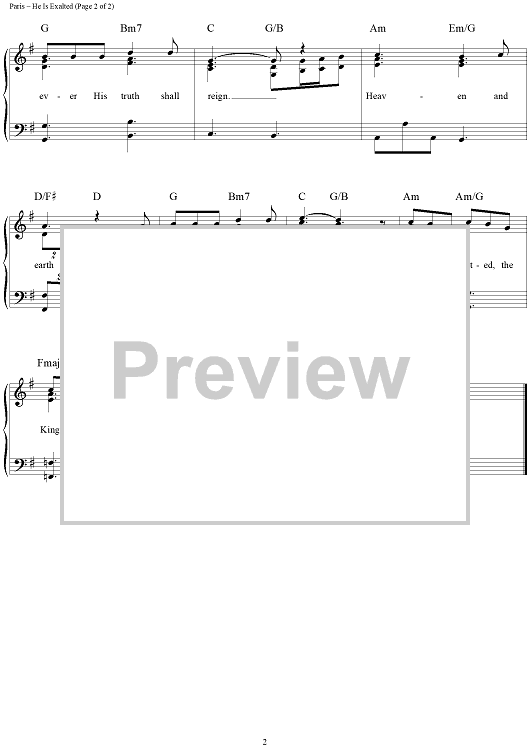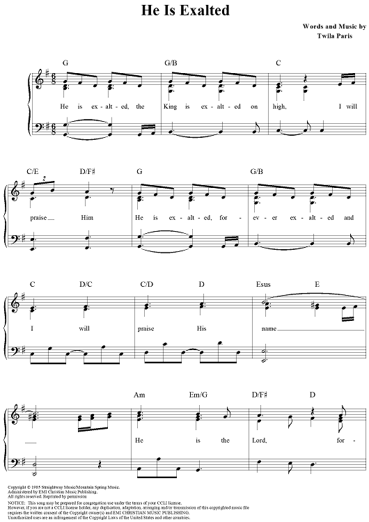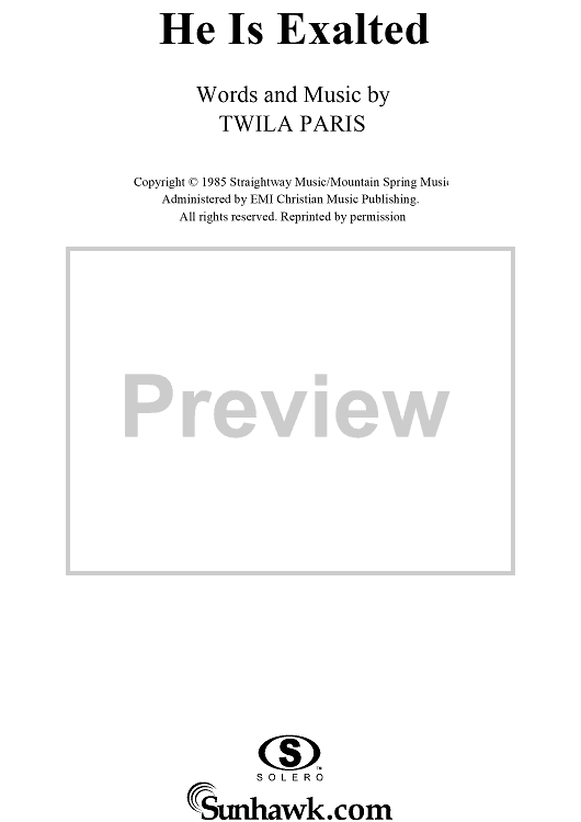 Digital Sheet Music for He is Exalted by Twila Paris scored for Piano/Vocal/Chords; id:113925