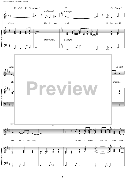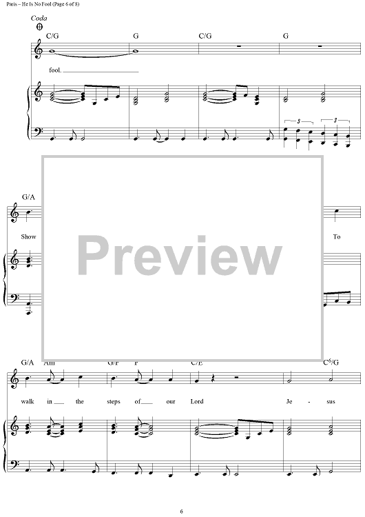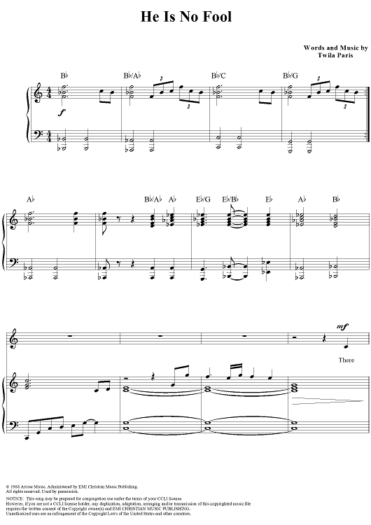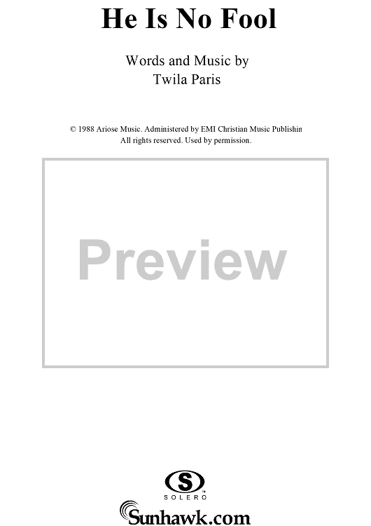Digital Sheet Music for He Is No Fool by Twila Paris scored for Piano/Vocal/Chords; id:119106