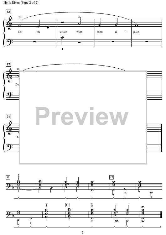 Digital Sheet Music for He Is Risen! by Cecil F. Alexander, Joachim Neander, David M. Love scored for Piano Solo/opt.duet; id:498212