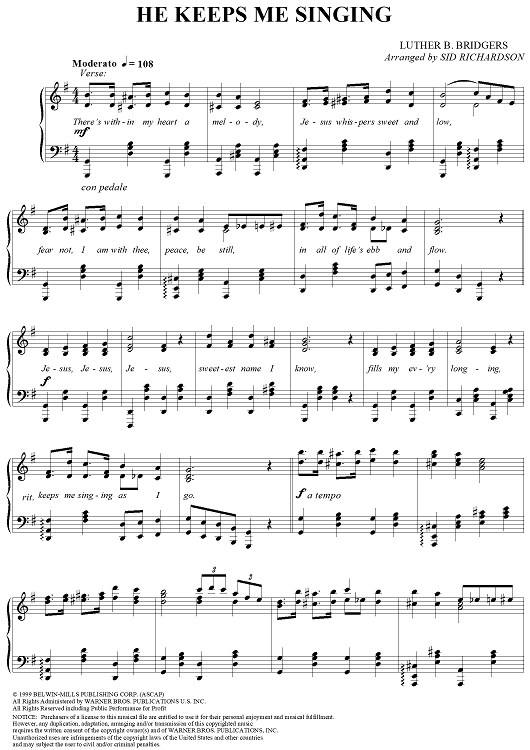 Digital Sheet Music for He Keeps Me Singing by Sid Richardson, Luther B. Bridgers scored for Piano Solo; id:274259