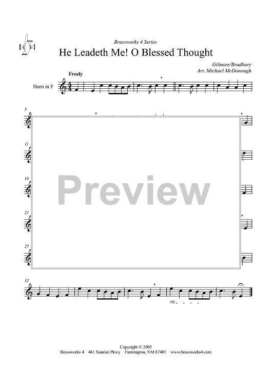 Digital Sheet Music for He Leadeth Me! O Blessed Thought - Horn in F by Joseph H. Gilmore, Michael McDonough, William B. Bradbury scored for Trumpet/Horn/Trombone; id:357988
