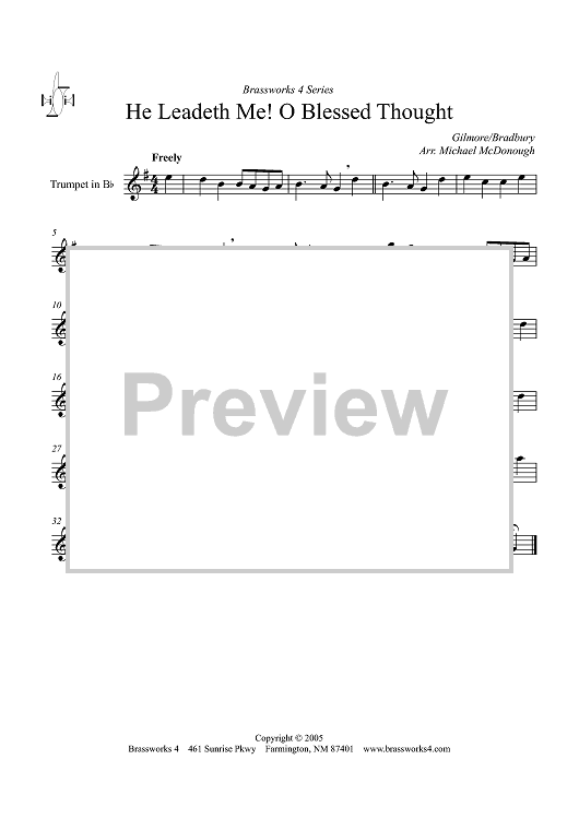 Digital Sheet Music for He Leadeth Me! O Blessed Thought - Trumpet in B-flat by Joseph H. Gilmore, Michael McDonough, William B. Bradbury scored for Trumpet/Horn/Trombone; id:357987