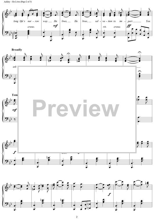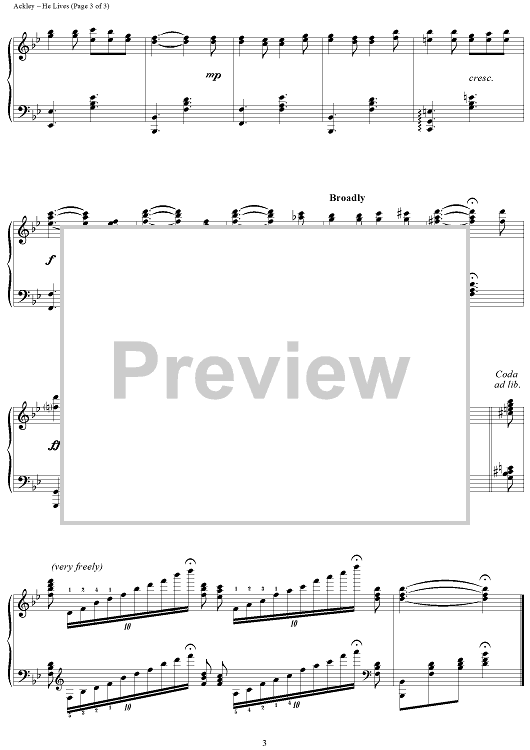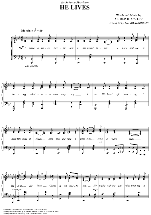 Digital Sheet Music for He Lives by Sid Richardson, Alfred H. Ackley scored for Piano Solo; id:278278