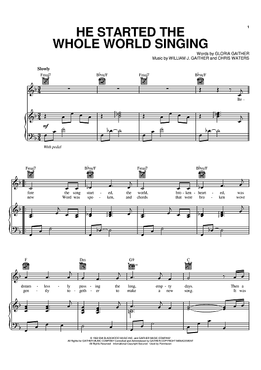 "He Started The Whole World Singing" Sheet Music by Gloria Gaither