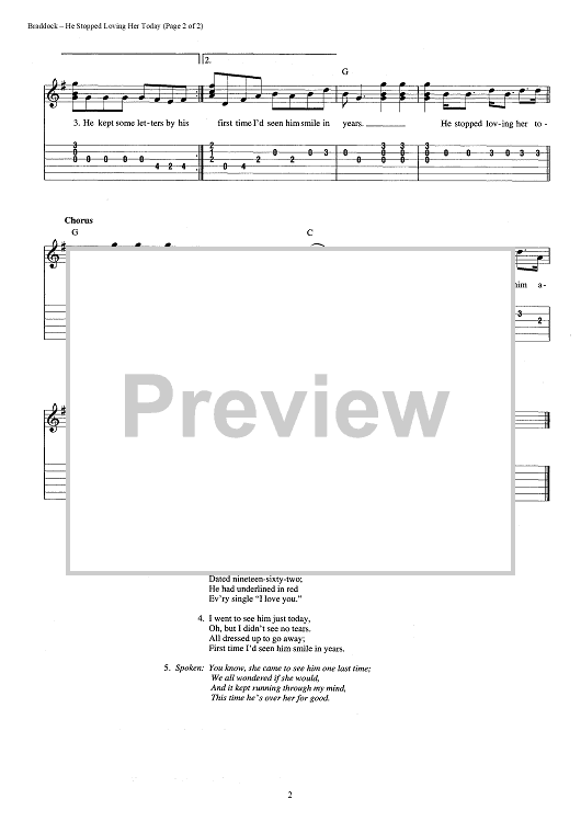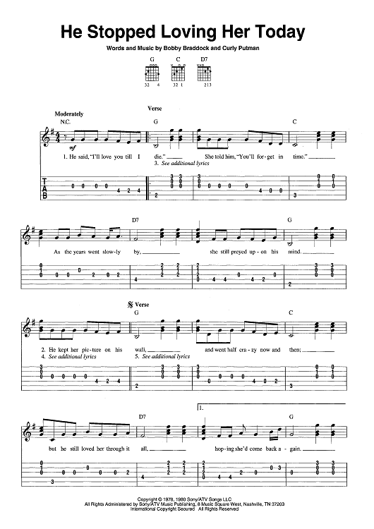 Digital Sheet Music for He Stopped Loving Her Today by George Jones, Curly Putnam, Bobby Braddock scored for Easy Guitar Tab/Vocal; id:441435