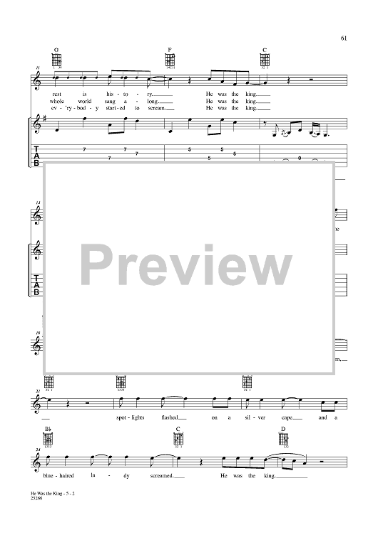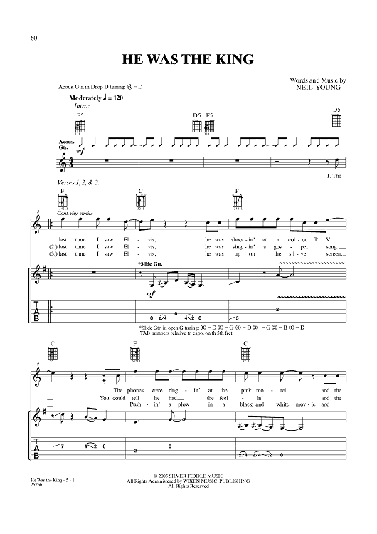 Digital Sheet Music for He Was the King by Neil Young scored for Guitar Tab/Vocal; id:359886