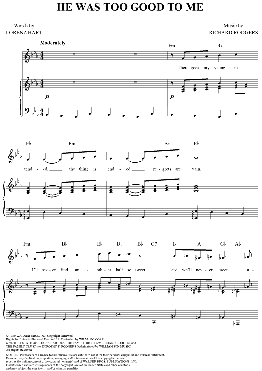Digital Sheet Music for He Was Too Good to Me by Richard Rodgers, Lorenz Hart scored for Piano/Vocal/Chords; id:170141