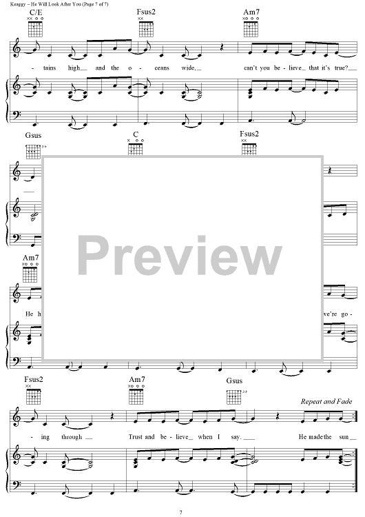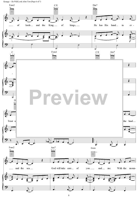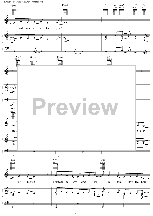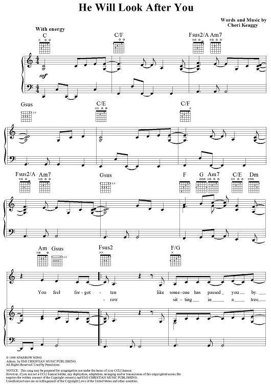 Digital Sheet Music for He Will Look After You by Cheri Keaggy scored for Piano/Vocal/Chords; id:124081