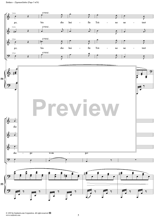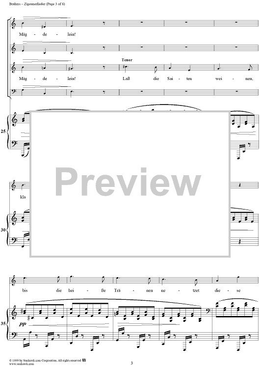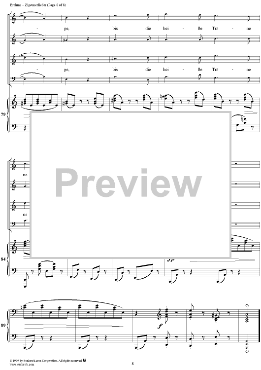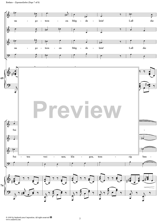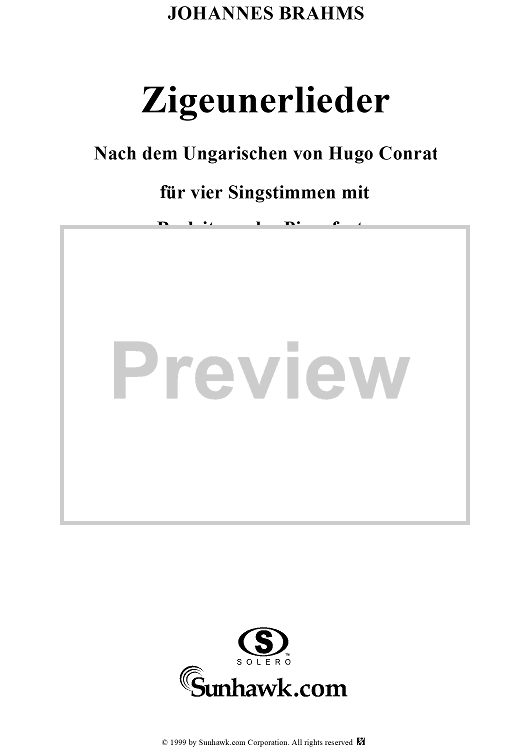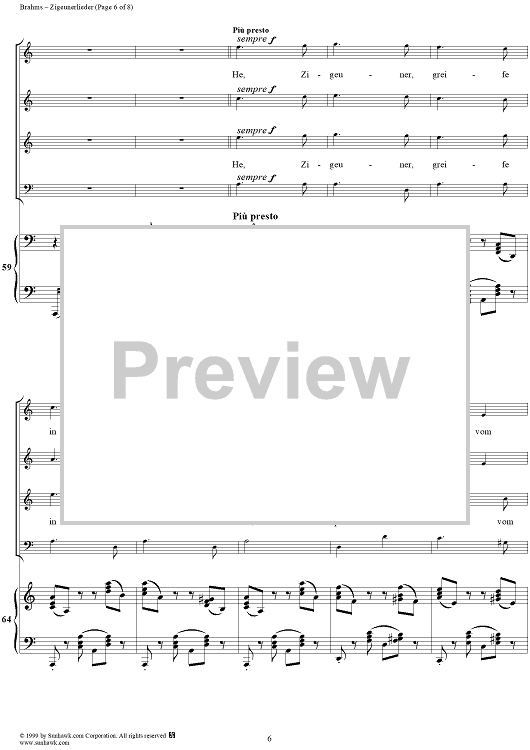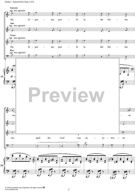 Digital Sheet Music for He, Zigeuner - From "Zigeunerlieder" Op. 103, No. 1 by Johannes Brahms scored for Voice/Piano; id:274504