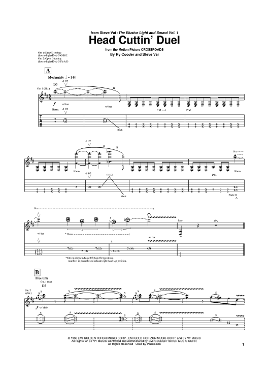 Digital Sheet Music for Head Cuttin' Duel by Ry Cooder, Steve Vai scored for Guitar Tab; id:374642