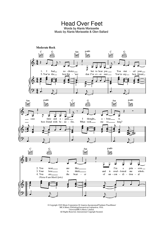 Digital Sheet Music for Head Over Feet by Glen Ballard, Alanis Morissette scored for Piano/Vocal/Chords; id:387698